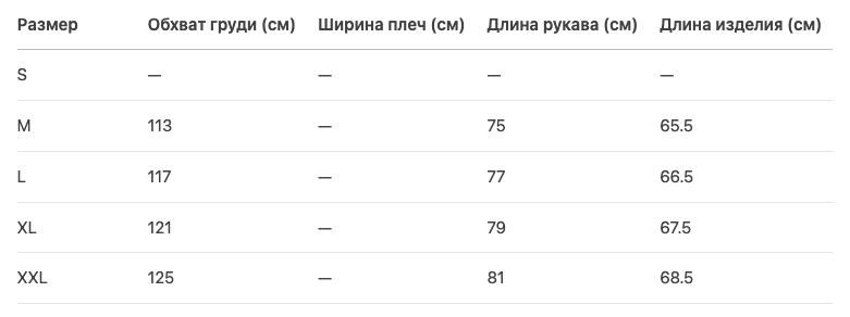 Размерная сетка